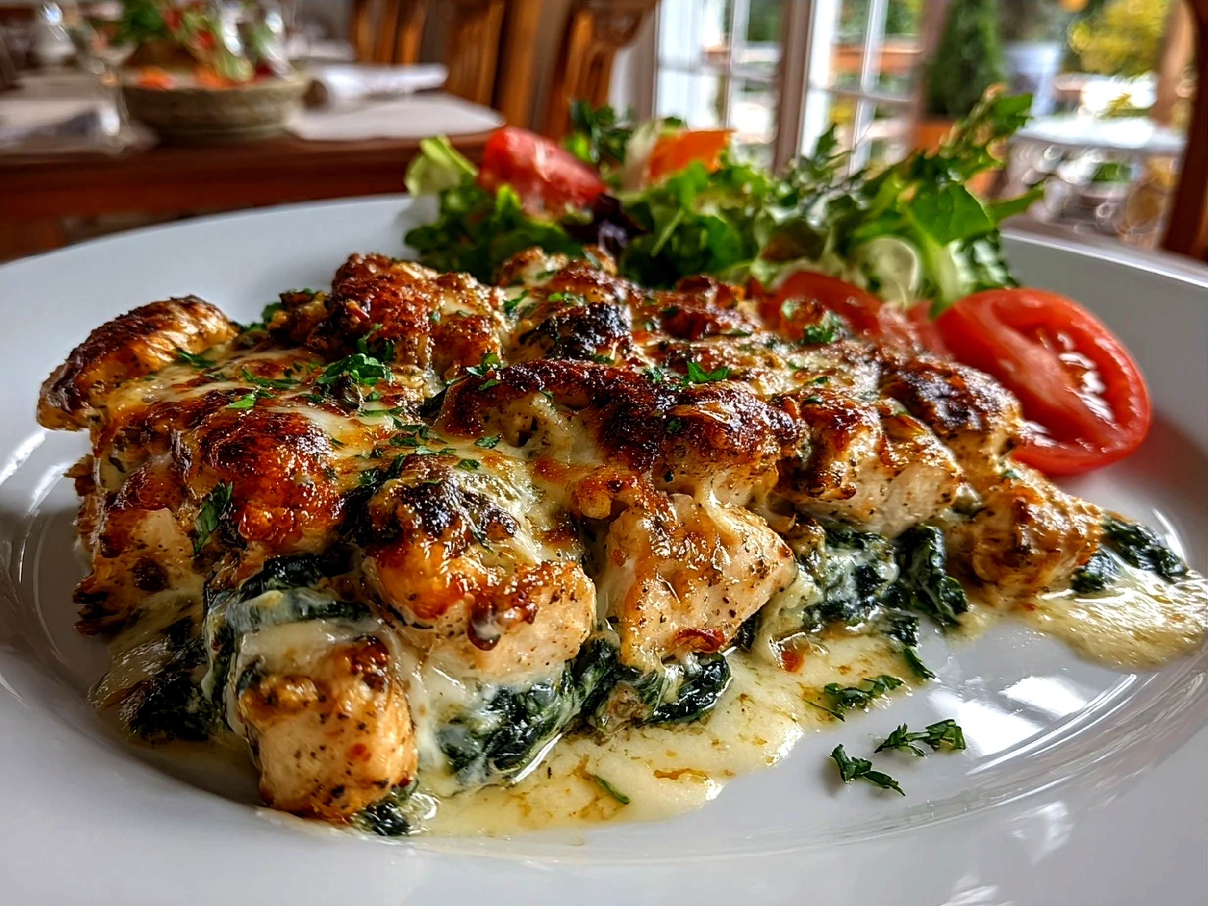 The family gathers quickly when this aromatic Chicken and Spinach Casserole appears with a crisp garden salad on the side. The freshness of the greens pairs perfectly with the creamy, cheesy bake, balancing richness with crunch and brightness. We also like to serve it alongside warm crusty bread, which sops up every last cheesy, saucy bite.