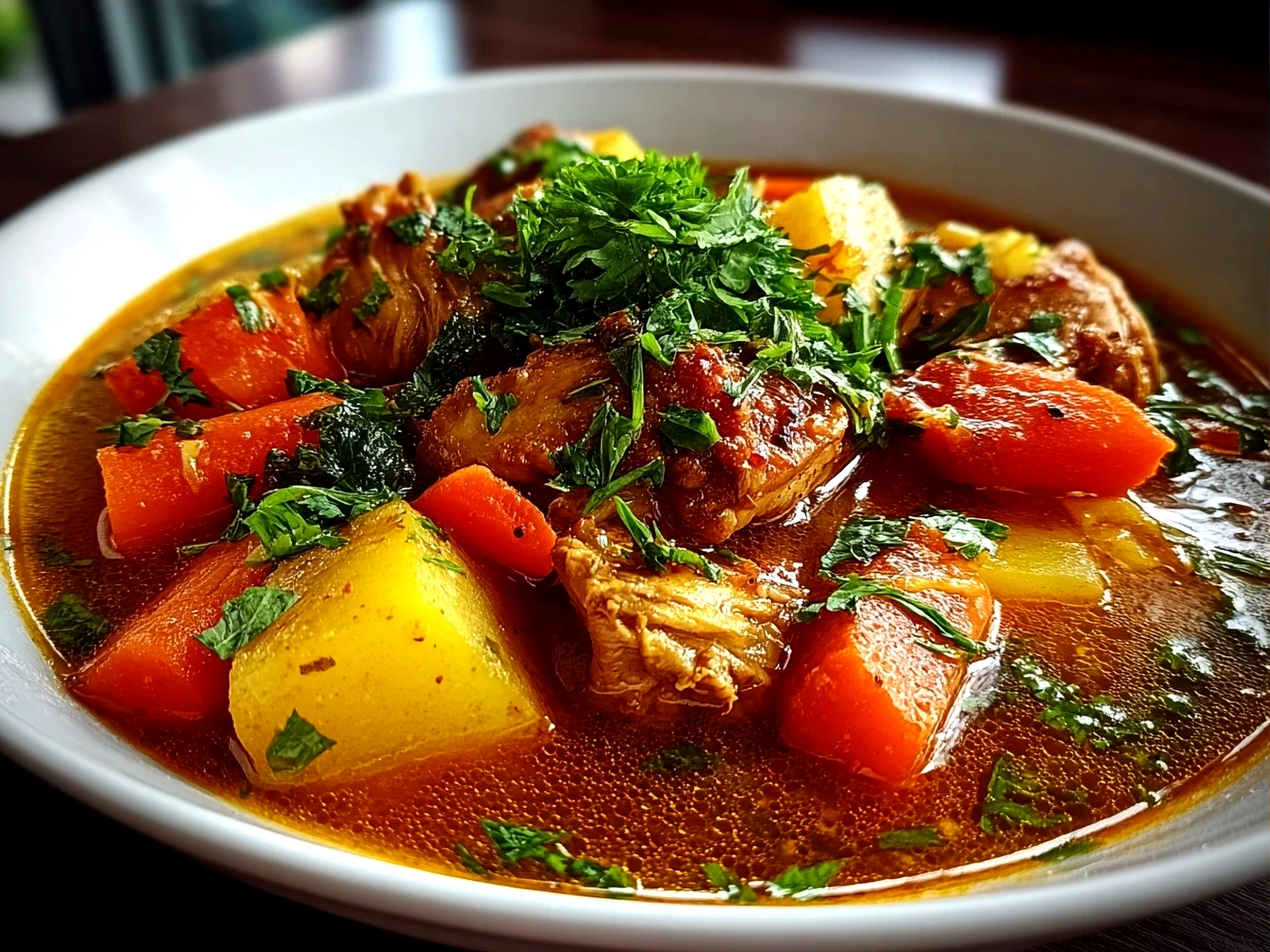 A hearty and comforting chicken stew packed with tender chicken, vegetables, and rich flavors perfect for a cozy meal.