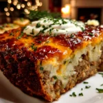 This Loaded Potato Meatloaf combines creamy mashed potatoes, savory ground beef, and melted cheese for a comforting and hearty meal perfect for weeknight dinners.