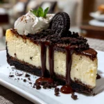 This creamy Oreo Cheesecake combines a rich, velvety filling with crunchy Oreo cookie pieces for the ultimate decadent dessert experience.