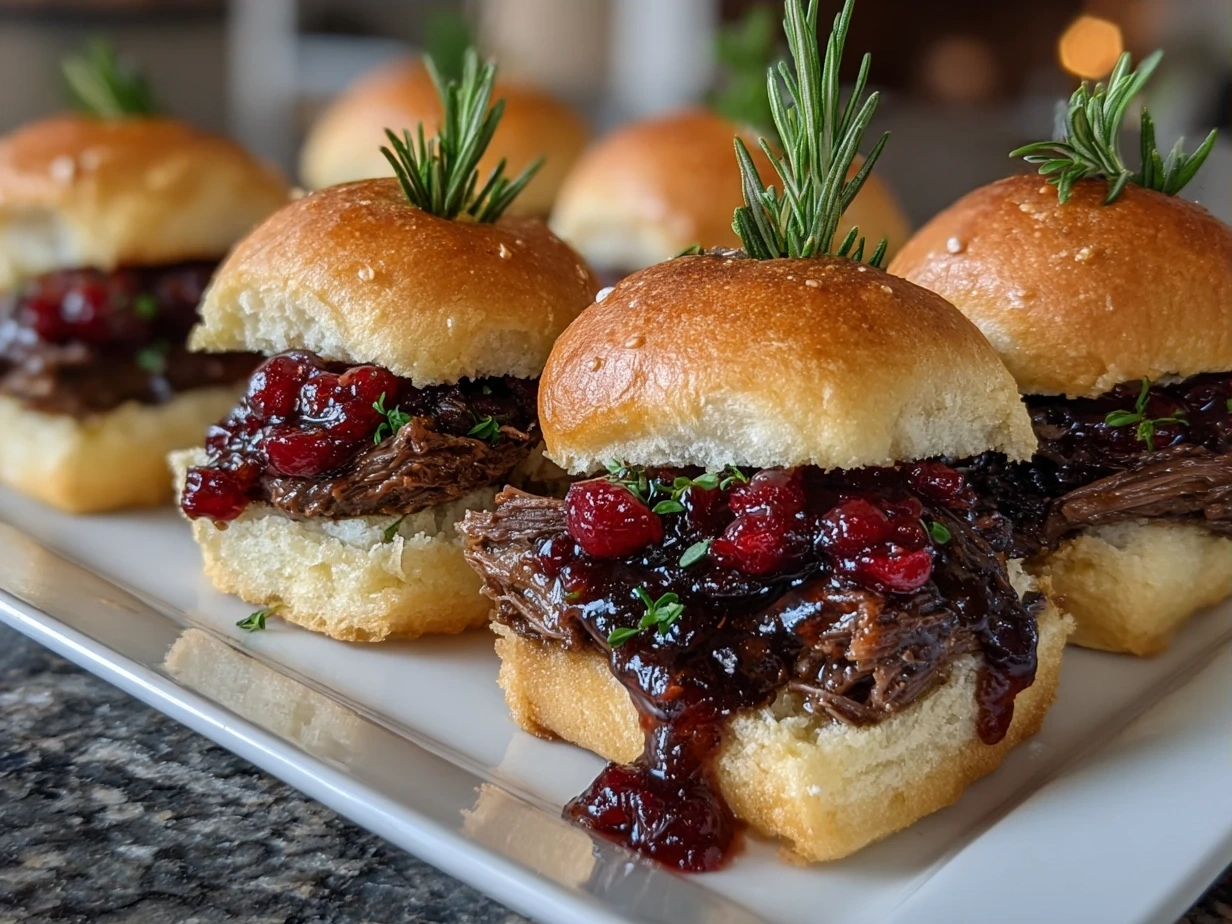 These Short Rib Sliders with Balsamic Cranberry Sauce combine tender, slow-cooked beef with a tangy, sweet sauce, perfect for an elegant appetizer or comforting snack.