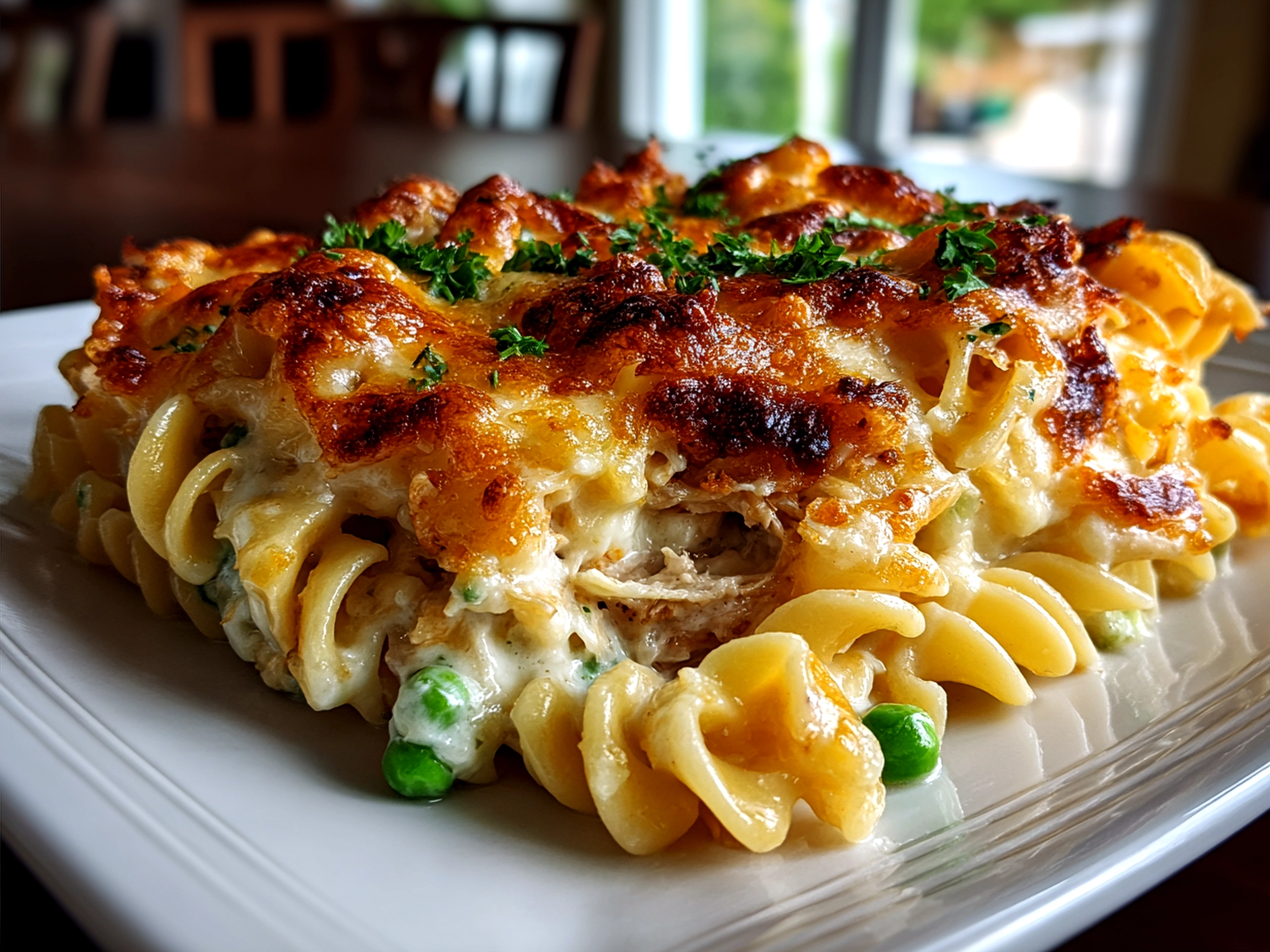 A classic, comforting Tuna Noodle Casserole featuring tender noodles, flaked tuna, and creamy sauce baked to golden perfection.